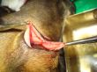 Resolución de la luxación de la glándula del tercer pérpado en un perro.